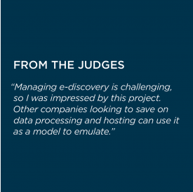The team brought all of AbbVie’s data collection and data processing in-house. With the addition of a data processing platform and forensic examiners to the department, AbbVie e-discovery essentially became an e-discovery vendor inside AbbVie’s walls. The e-discovery group, a part of the 12-person Legal Operations function, has the company’s IP and commercial litigation teams as their main internal clients.