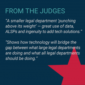 As a result, the legal team is delivering superior outcomes, while reducing external spend by 20 percent.