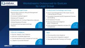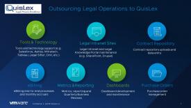 VMware outsourced legal ops capabilities to QuisLex, which now supports a broad portfolio of work. The nature of the partnership is crucial to its success, says Ram Vasudevan, CEO of QuisLex. “It’s a strategic relationship, where what we are doing reduces risk and cost as a part of VMware’s long-term scaling plan. We are truly integrated into their overall legal ecosystem.”