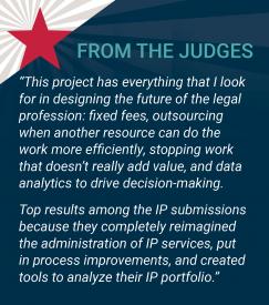 “We reiterated that we completely support the idea of filing IP, but it’s critical to file the right kind of IP. We asked the business what they needed and to trust us to help them. We eliminated bloat, redundancies, and outdated IP. Although we did reduce the size of the in-house department, all important IP has been retained,” says Kellam.