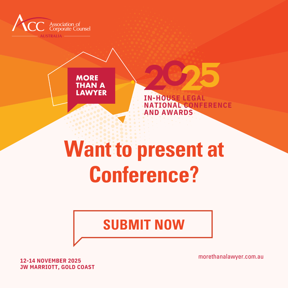 This year’s National Conference program will provide a platform to go back to our roots, focusing sessions to be 'By in-house, for in-housel®'. ACC Australia is committed to bringing members excellent content and, as such, we invite you to submit session proposals for the 2025 conference program.