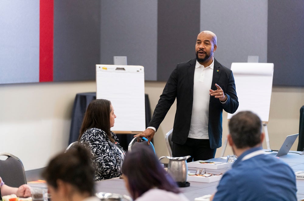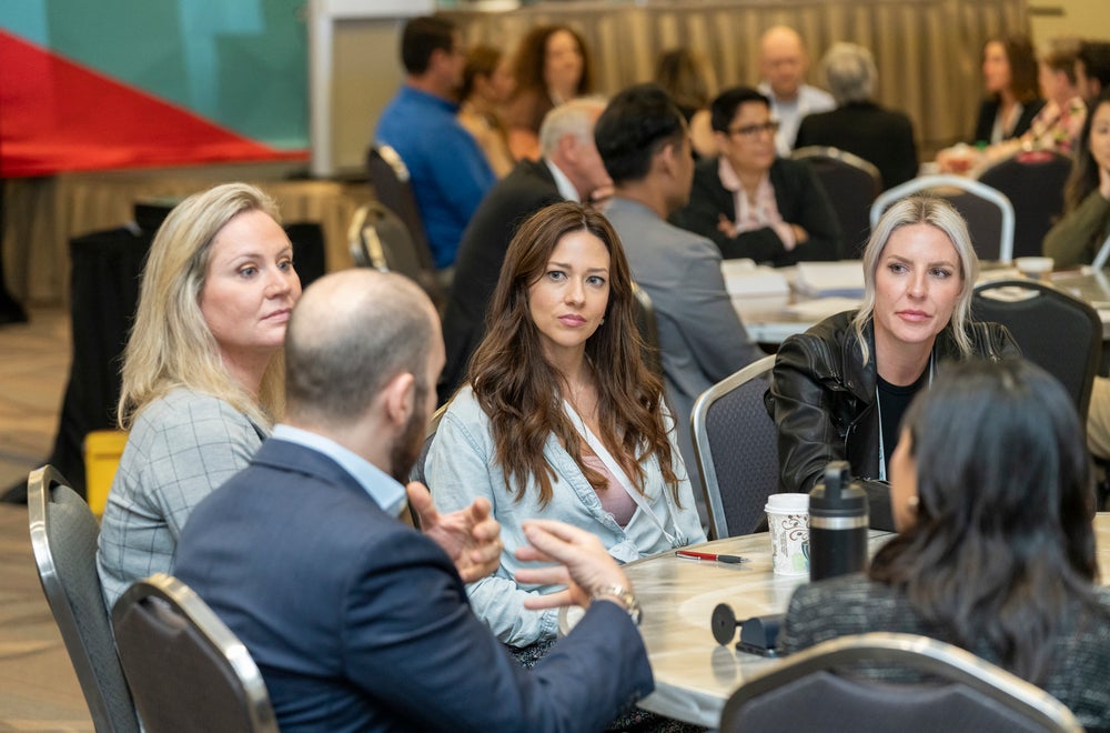 A Panel Format program consists of 3-4 speakers, typically presenting their content from a head table or other seated stage setup. Panels may include polling and/or audience Q&A, but do not involve audience participation beyond that.