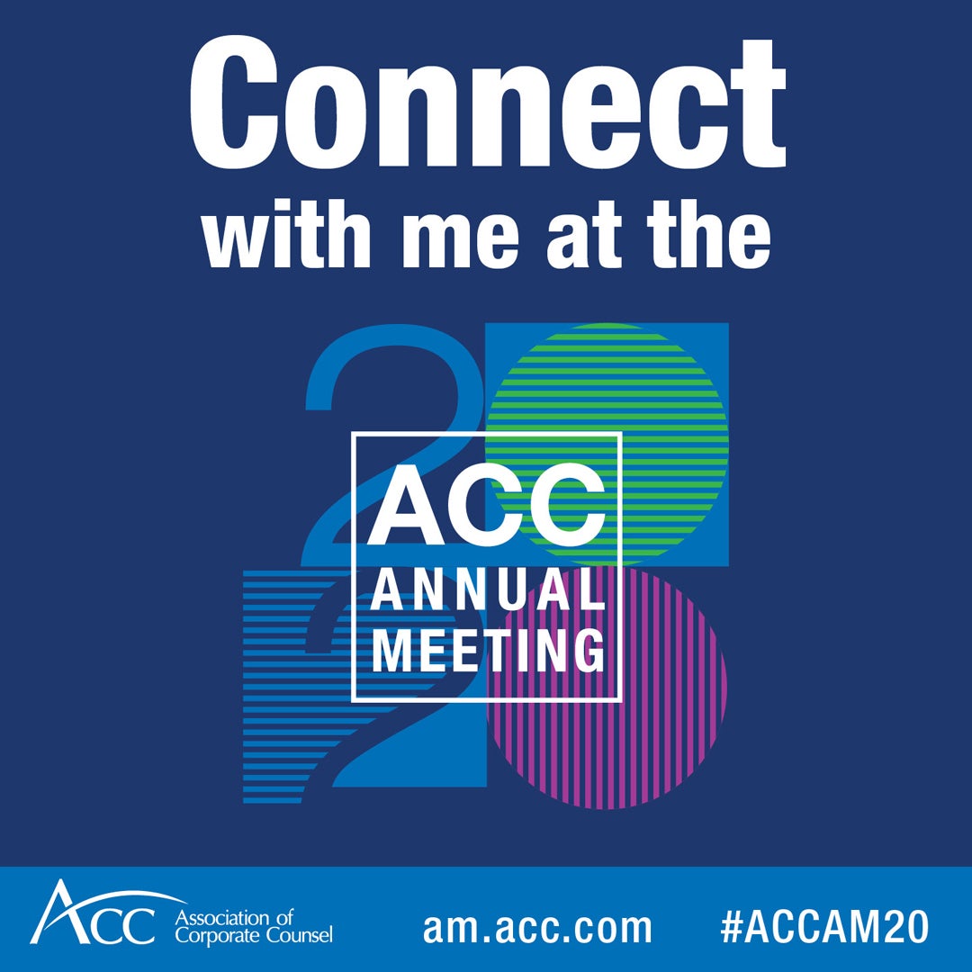 We are committed to providing you the education, networking, and legal department solutions you need this fall. Originally, our plan was to host the 2020 ACC Annual Meeting (#ACCAM20) as a hybrid live/virtual meeting, with speakers and breakout sessions available to all attendees, whether joining us in Philadelphia or from their homes. However, due to recent spikes in COVID-19 cases and in the interest of attendee safety, ACC made the necessary decision to change course: #ACCAM20 will be 100 percent virtual.