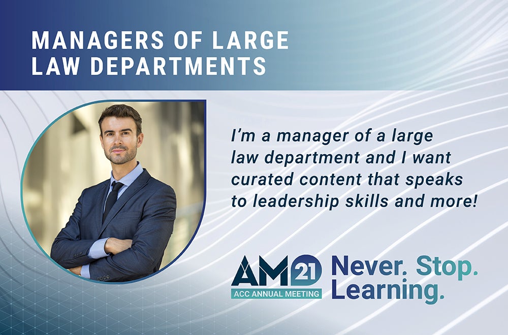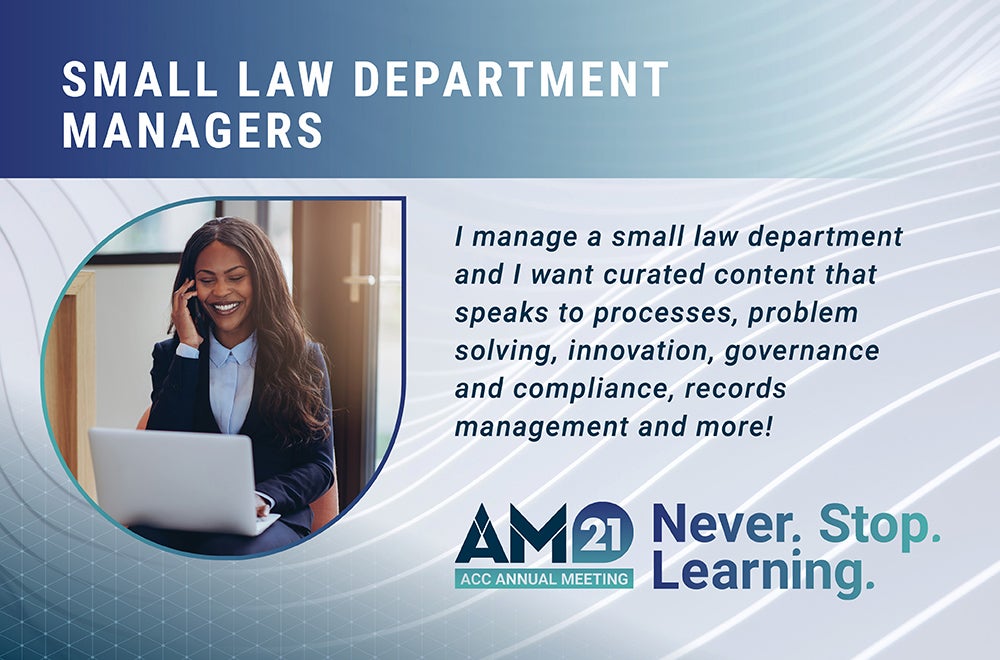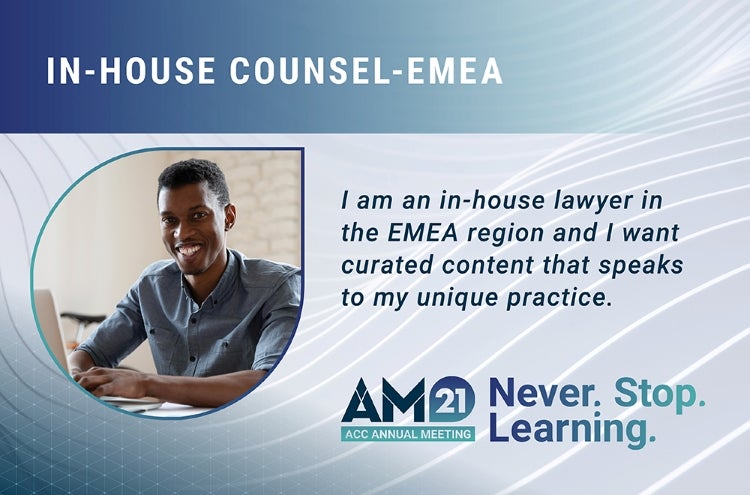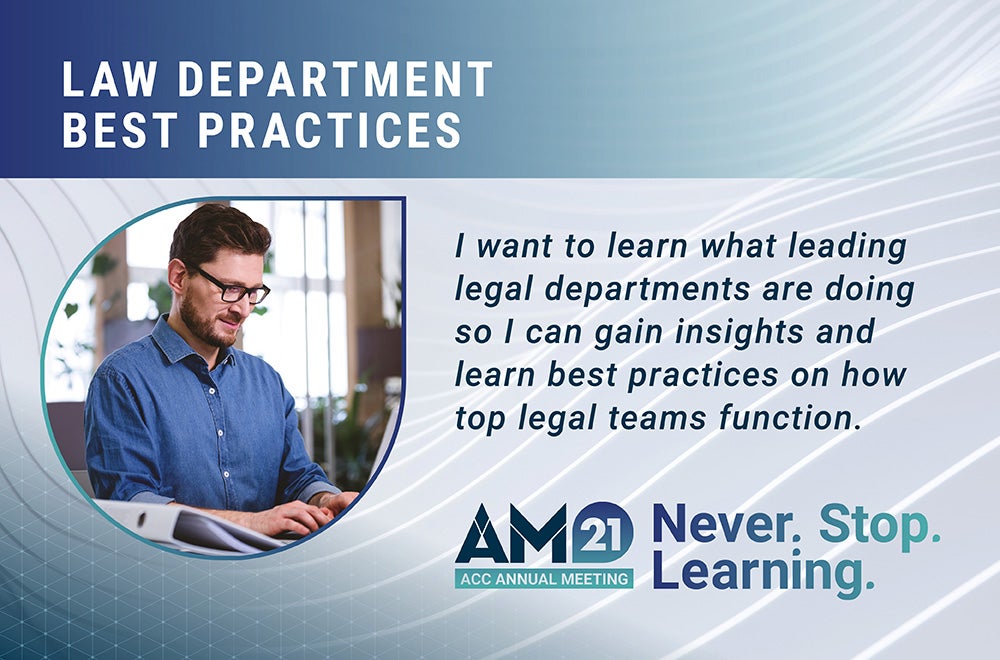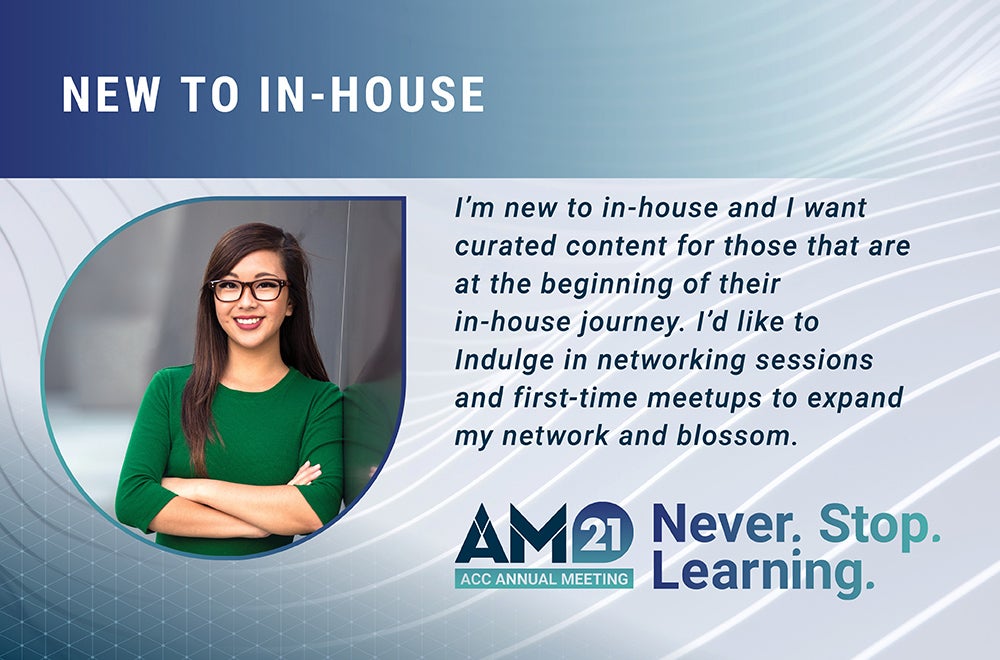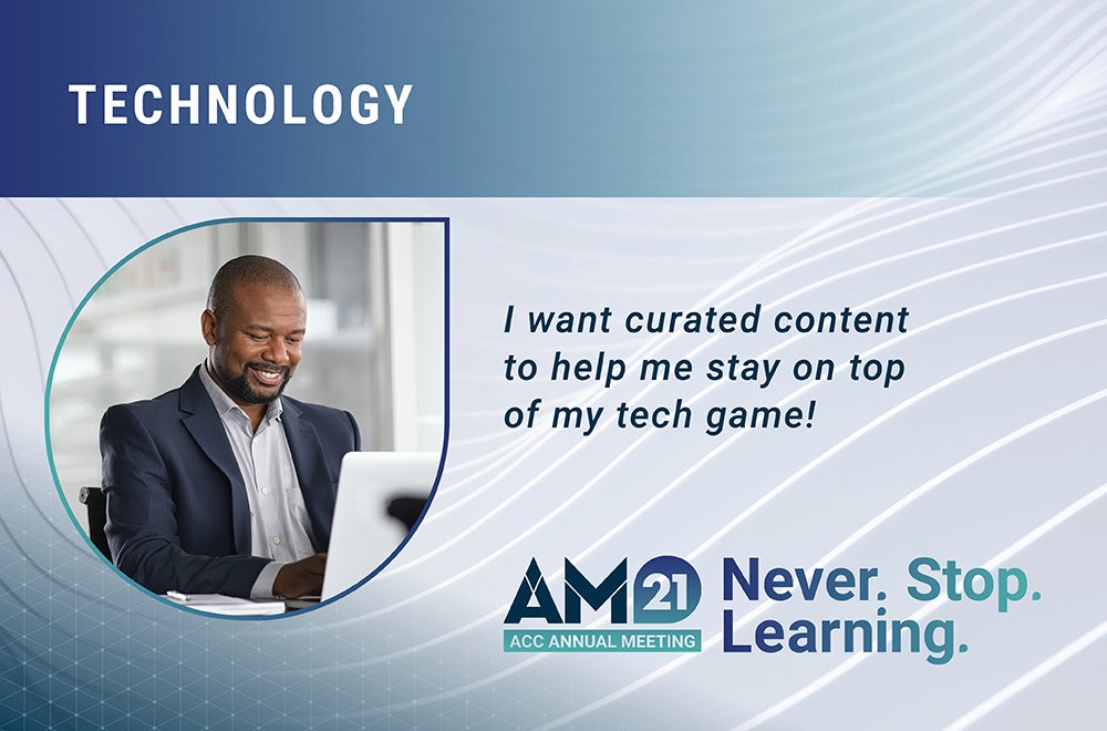 - talk to speakers, thought leaders, and vendors about the latest tech, trends, and best practices across the in-house community.