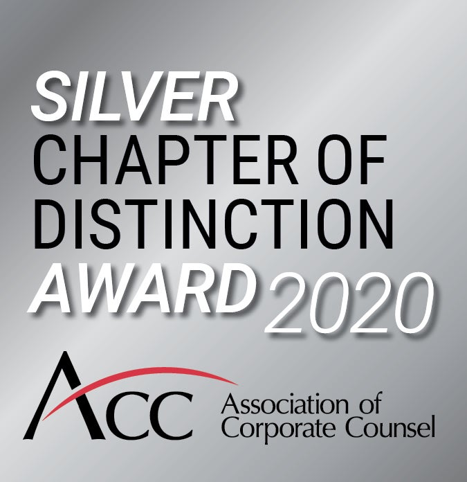 Since its founding in 1997, ACC Baltimore has received the ACC's Chapter of the Year honors twice, as well as two Honorable Mentions. Most recently, we were awarded the Chapter of Distinction Silver award each year from 2019 through 2024 by the Association of Corporate Counsel. The Chapter's Past President, Maureen Dry-Wasson, was selected as ACC's Member of the Year for 2008 and former Chapter Vice President Ed Paulis was selected as ACC's Member of the Year for 2016!