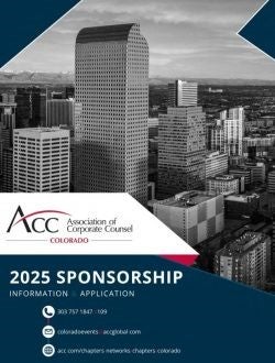 Strategic sponsorship: ACC Colorado offers sponsors the opportunity to imagine unique networking events, presentation topics, panelists, and presentation formats that may lead to long term networking and business relationships with ACC Colorado members.