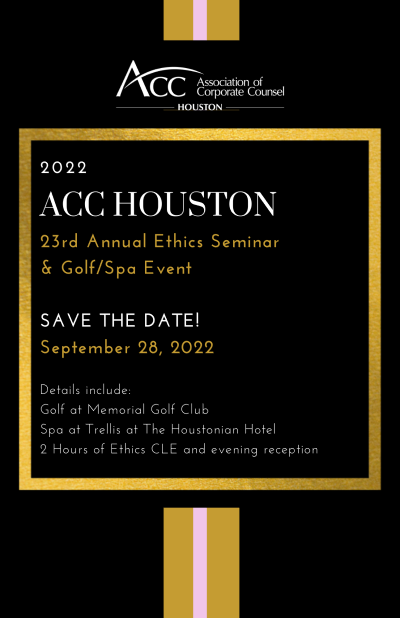 The ACC Houston Chapter is proud to have Stuart Teicher as our 2025 Ethics Seminar speaker. The morning presentation will run from 9:00 am - 11:00 am at the beautiful Junior League of Houston located at 1811 Briar Oaks Lane, Houston, TX 77027. Brunch will be served during the presentation.
