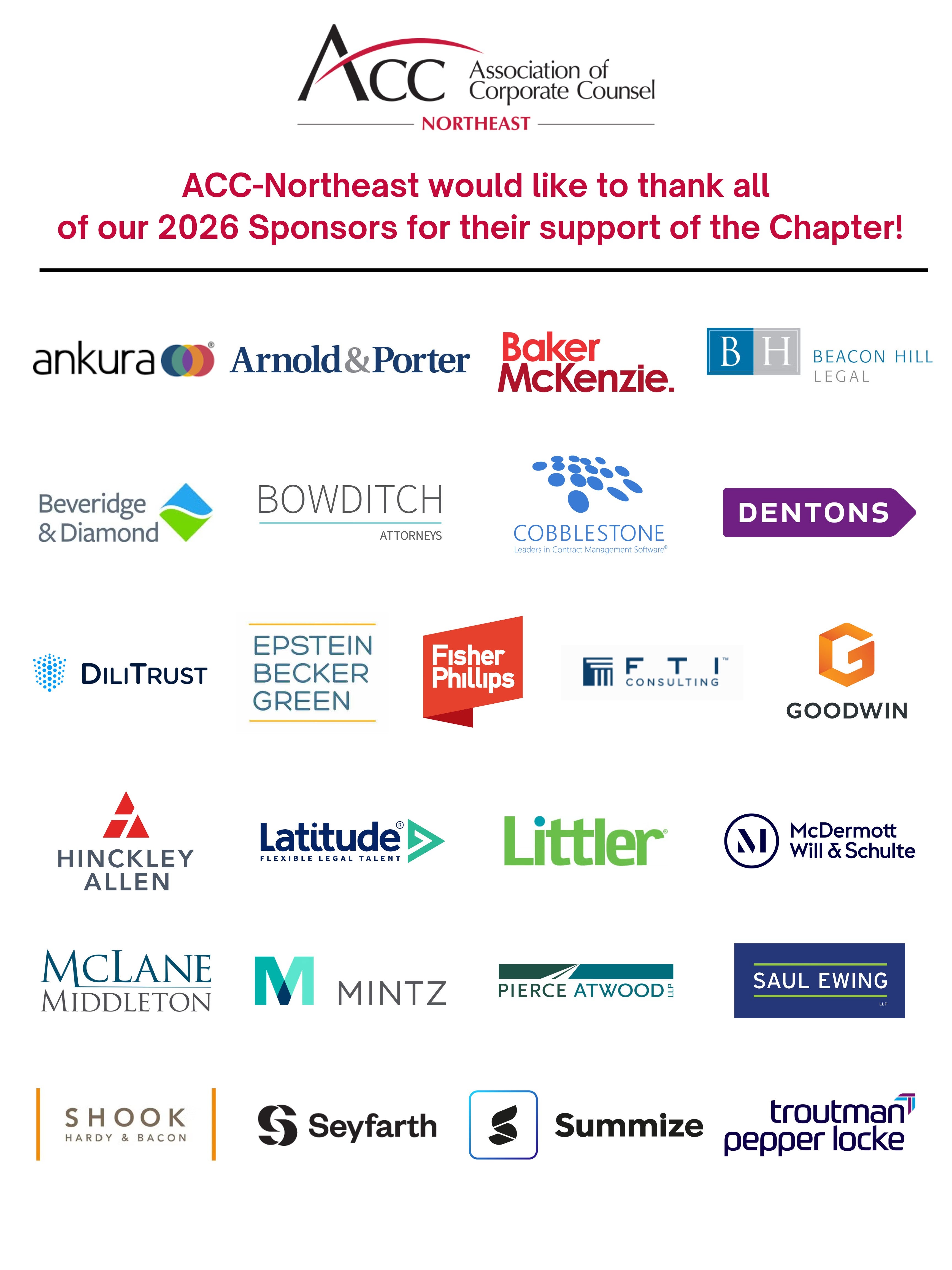As we move through 2026, I sincerely hope ACC Northeast continues to lead by example in this way. That spirit of encouragement shows up in so many corners of our own Chapter—from the members who raise their hands to serve, to the colleagues who nominate one another for leadership, to the sponsors and partners who invest their time and resources to support this community.