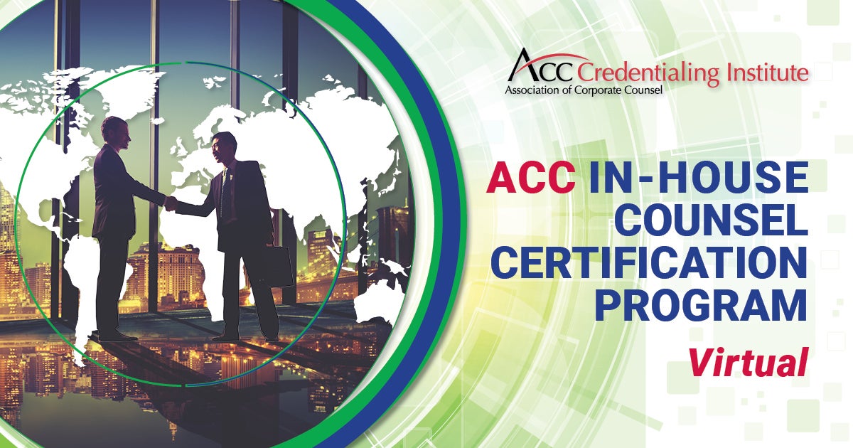 The ACC In-house Counsel Certification program is an intensive program designed to specifically help in-house counsel become proficient in the essential skills critical for an in-house legal career. This comprehensive program is not tied to any specific country’s laws, but instead draws from the experience of ACC's global membership to identify what is essential to the successful in-house practice. The program is designed to develop three competency areas: Stakeholder Relations, Department Management, and Legal Services.