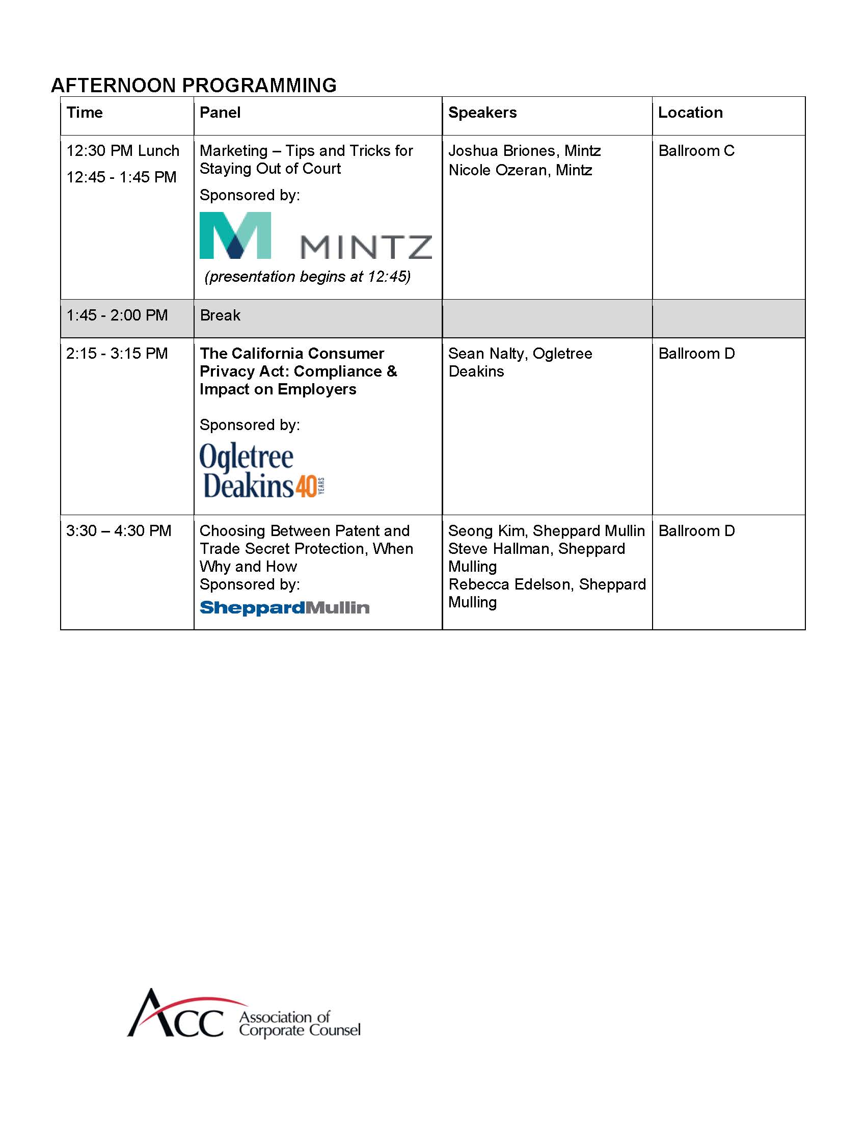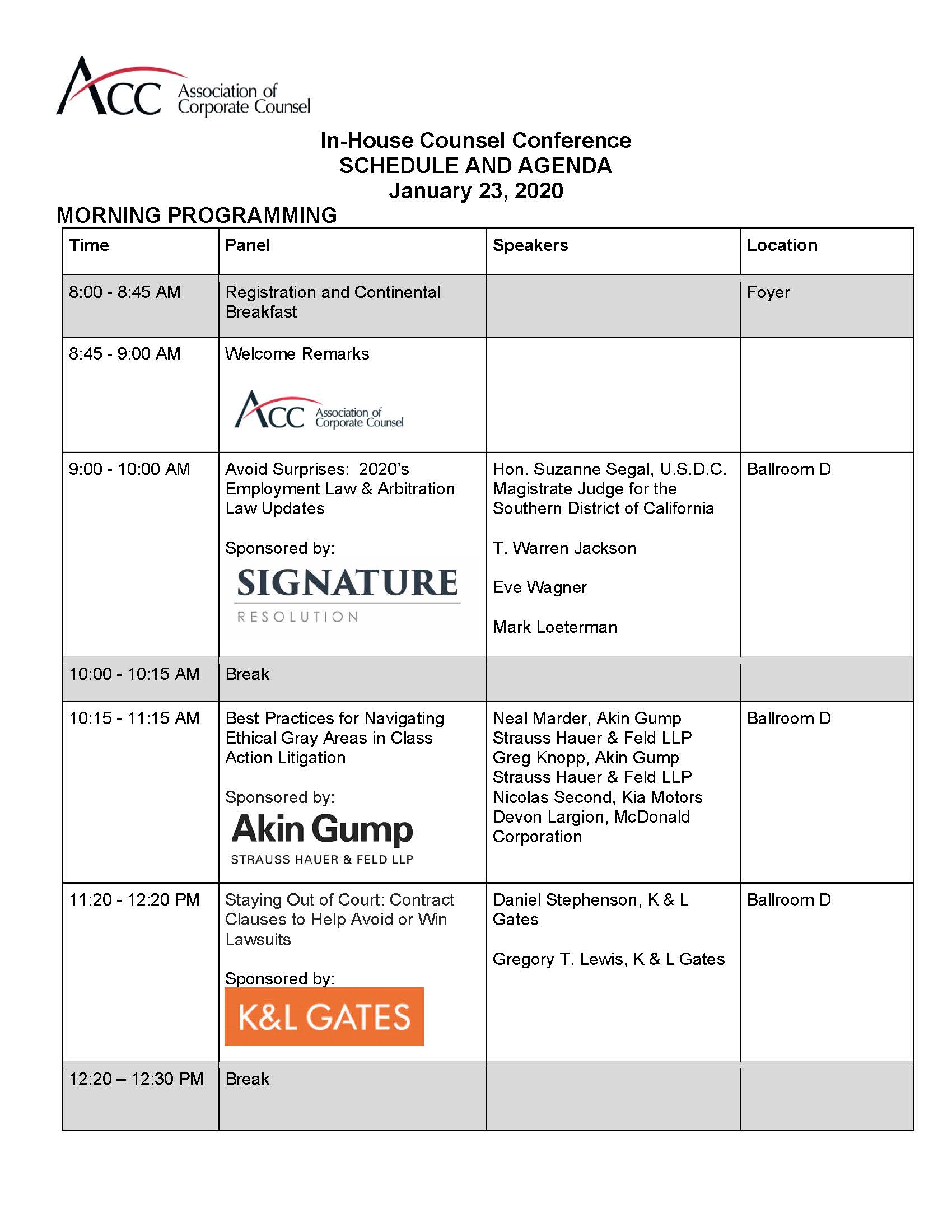 2020 LA In-house Counsel Conference Schedule & Agenda