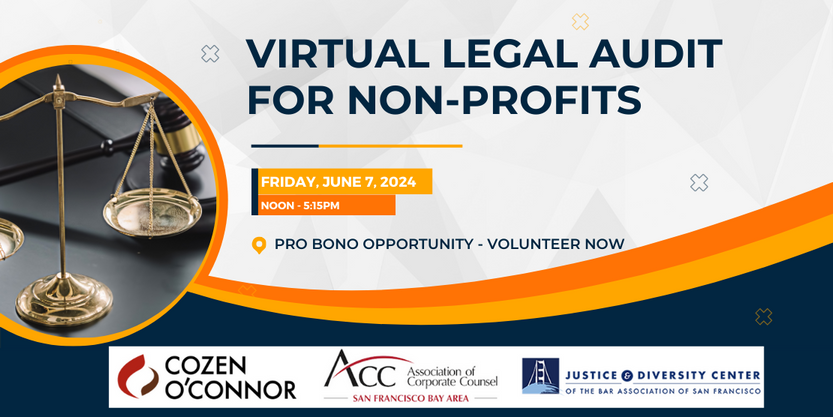 Please join us on the Zoom platform for our ACC-SFBA employment law consultation for 501(c)(3) nonprofit organizations. This event is presented by Cozen O'Connor and organized in conjunction with the Justice & Diversity Center of the Bar Association of San Francisco (JDC).