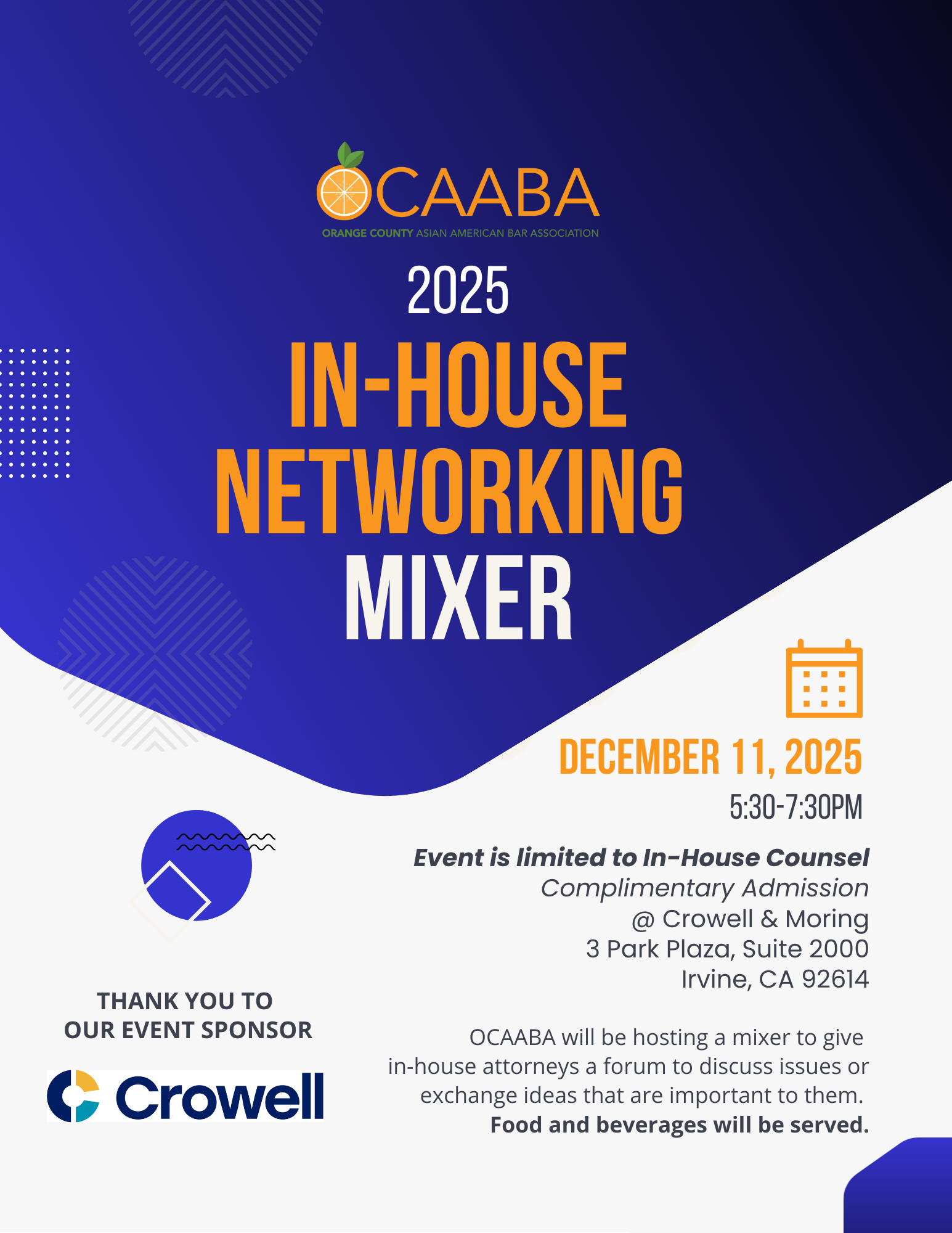 ACC Southern CaliforniaACC Southern California and OCAABA are pleased to invite you to a special In-House Networking Mixer on Thursday, December 11th, from 5:30 PM to 7:30 PM.