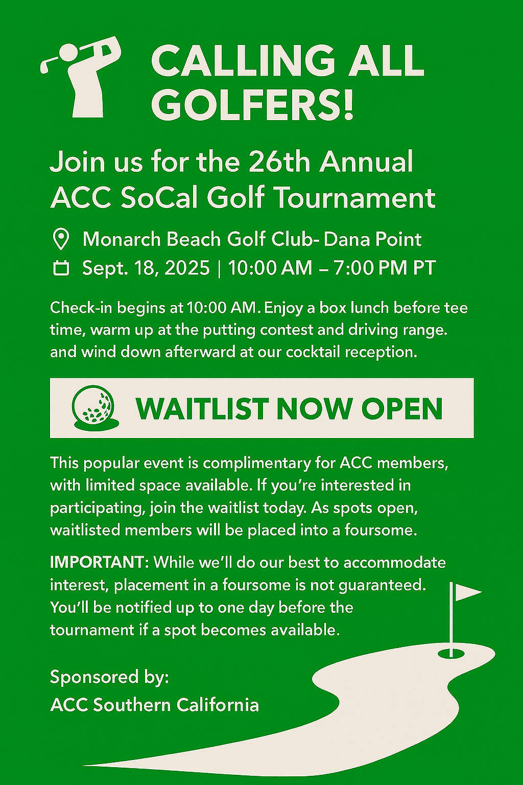 ACC Southern CaliforniaCALLING ALL GOLFERS!