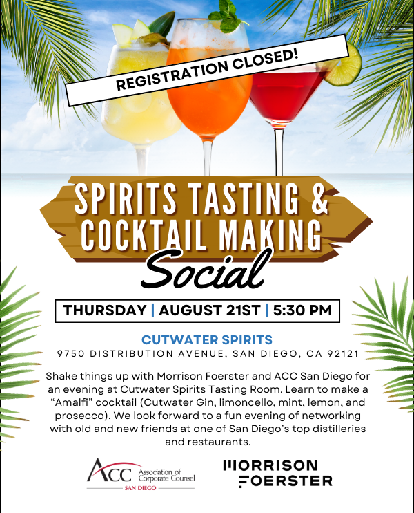 ACC San Diego events are strictly reserved for eligible in-house counsel. ACC reserves the right to verify eligibility of any registrant at any time and cancel unqualified registrants/registrations.