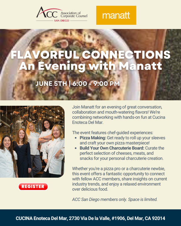 When you participate in an ACC or ACC San Diego event, photography, audio and/or video recording may occur. By participating in the event, you grant ACC San Diego and other entities as ACC San Diego may designate from time to time the right to create, use, distribute, broadcast, edit, or otherwise disseminate the photography, audio and/or video recording from the event that contain recordings of you or your likeness without any further review or approval from you. In whole or in part, throughout the world, in perpetuity in any and all media now known or hereafter developed. This grant to the ACC San Diego includes, but is not limited to, the use of the recordings either alone or together with supporting materials, such as video or supporting information.