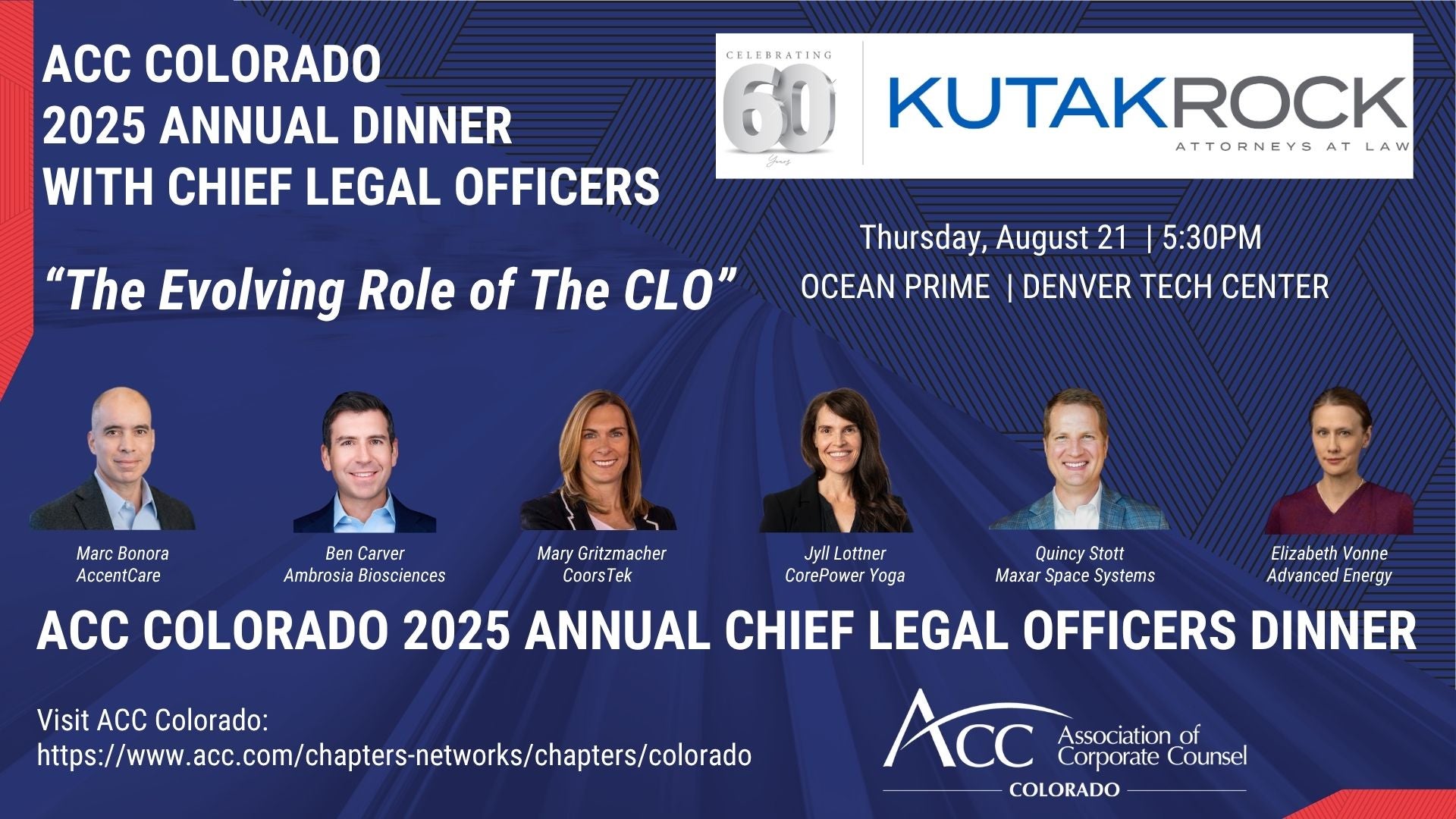 Join your ACC colleagues for this annual dinner program as select Colorado CLOs offer individual table discussions and valuable insight on the following: