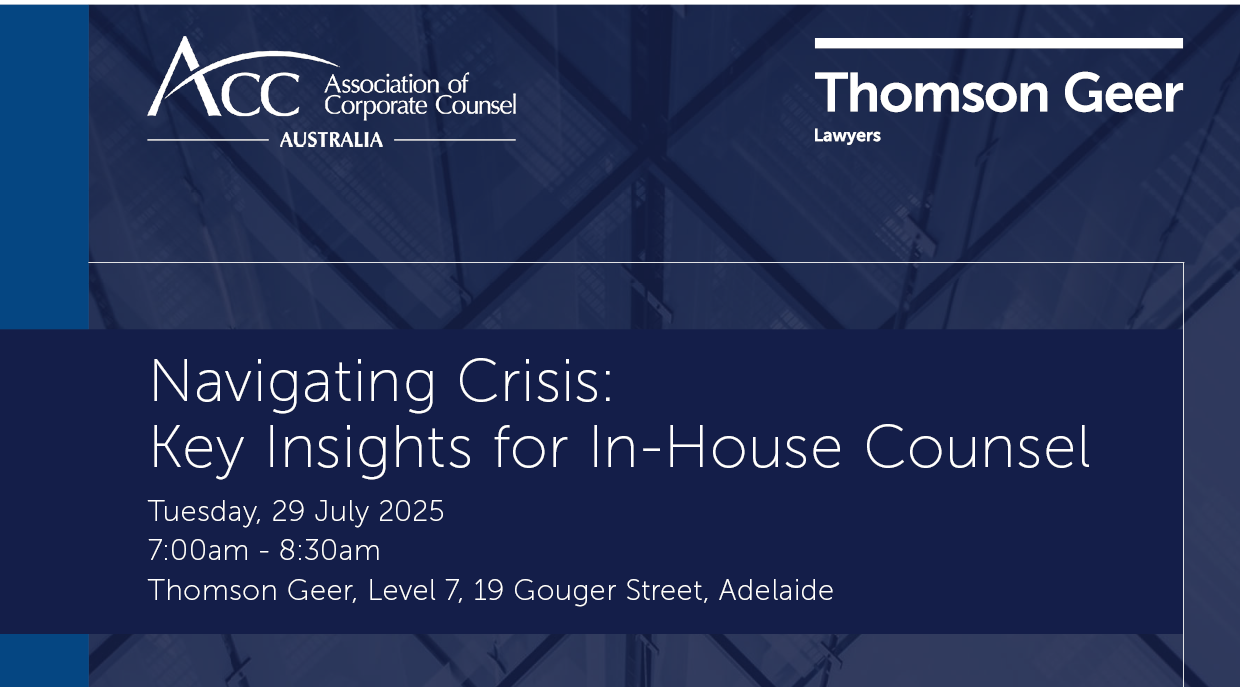 This session will be facilitated by Fiona Stapleton, Special Counsel at Thomson Geer, and will focus on actionable strategies to help you navigate challenging situations with clarity and confidence and provide you with an opportunity to connect with fellow in-house counsel.