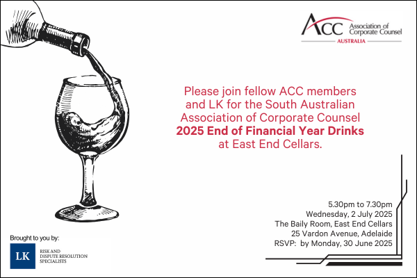 The South Australian 2025 ACC End of Financial Year Social Event will be held at East End Cellars, Vardon Street in the city.