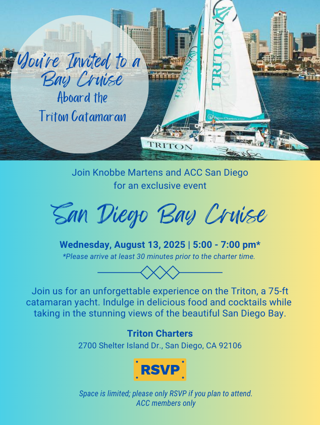 ACC San Diego events are strictly reserved for eligible in-house counsel. ACC reserves the right to verify eligibility of any registrant at any time and cancel unqualified registrants/registrations.