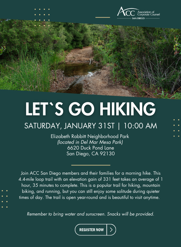 When you participate in an ACC or ACC San Diego event, photography, audio and/or video recording may occur. By participating in the event, you grant ACC San Diego and other entities as ACC San Diego may designate from time to time the right to create, use, distribute, broadcast, edit, or otherwise disseminate the photography, audio and/or video recording from the event that contain recordings of you or your likeness without any further review or approval from you. In whole or in part, throughout the world, in perpetuity in any and all media now known or hereafter developed. This grant to the ACC San Diego includes, but is not limited to, the use of the recordings either alone or together with supporting materials, such as video or supporting information.