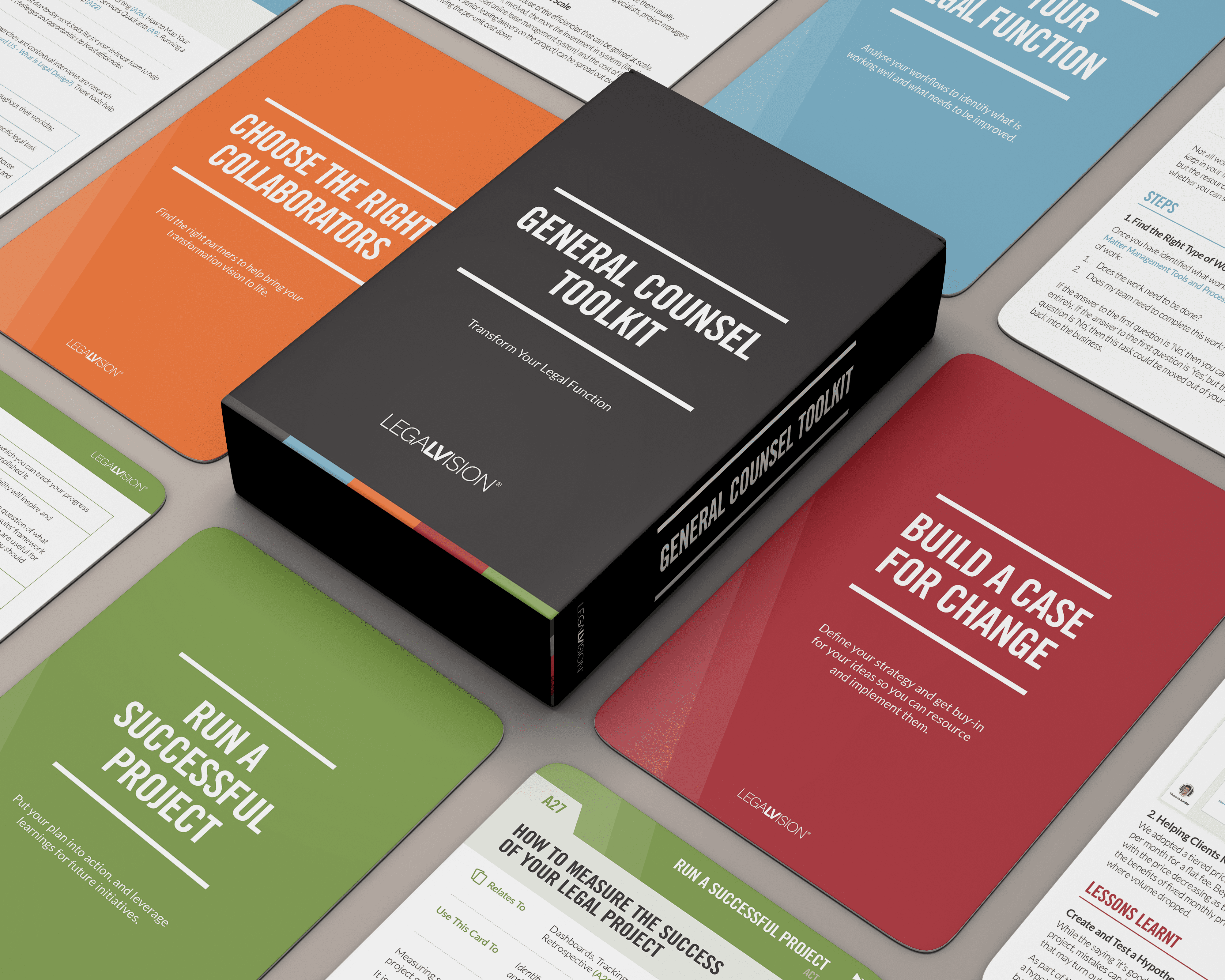 Designed to sit on a corporate lawyer’s desk (or in their remote office), counsel can dip in and out of the Toolkit depending on their stage in the transformation process.