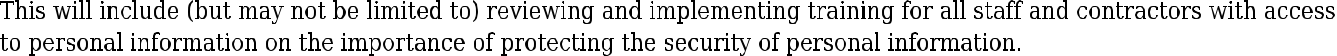 This will include(but may not be limited to) reviewing and implementing training for all staff and contractors with access to personal information on the importance of protecting the security of personal information.
