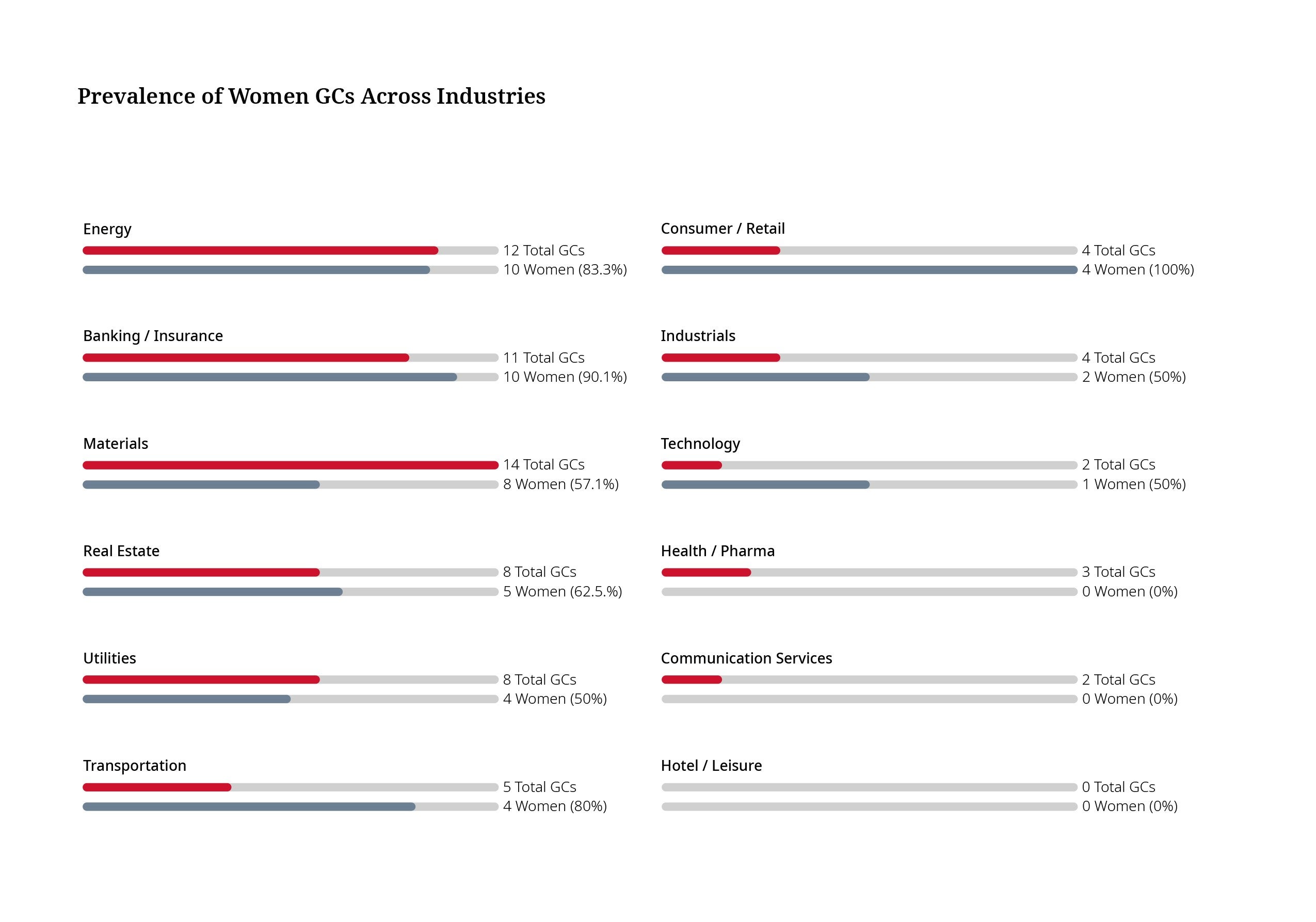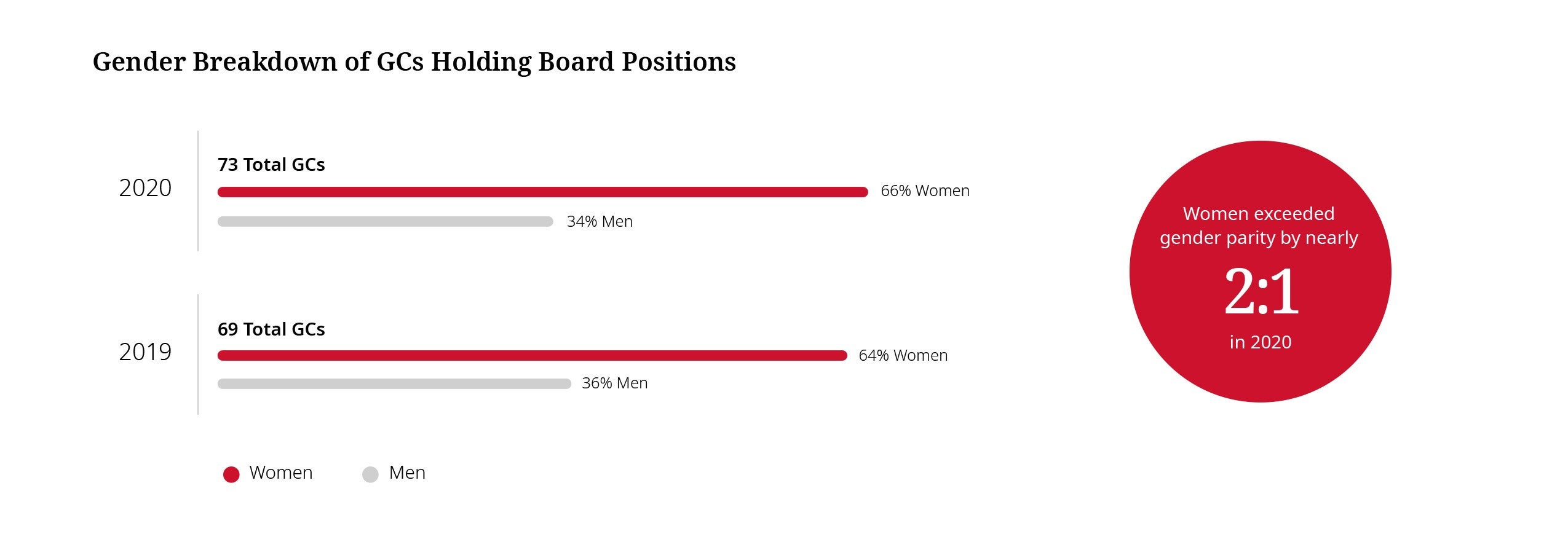 - In certain sectors, women GCs remain underrepresented on boards of directors.