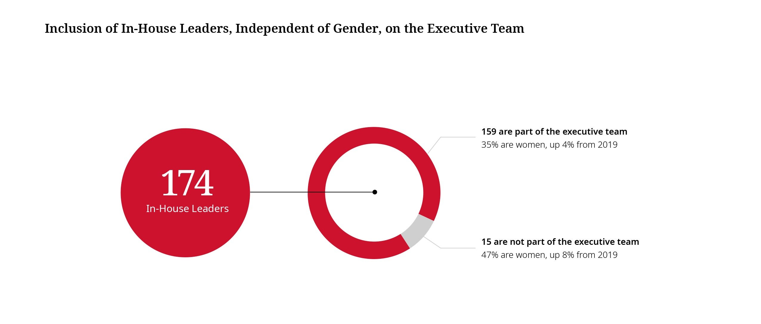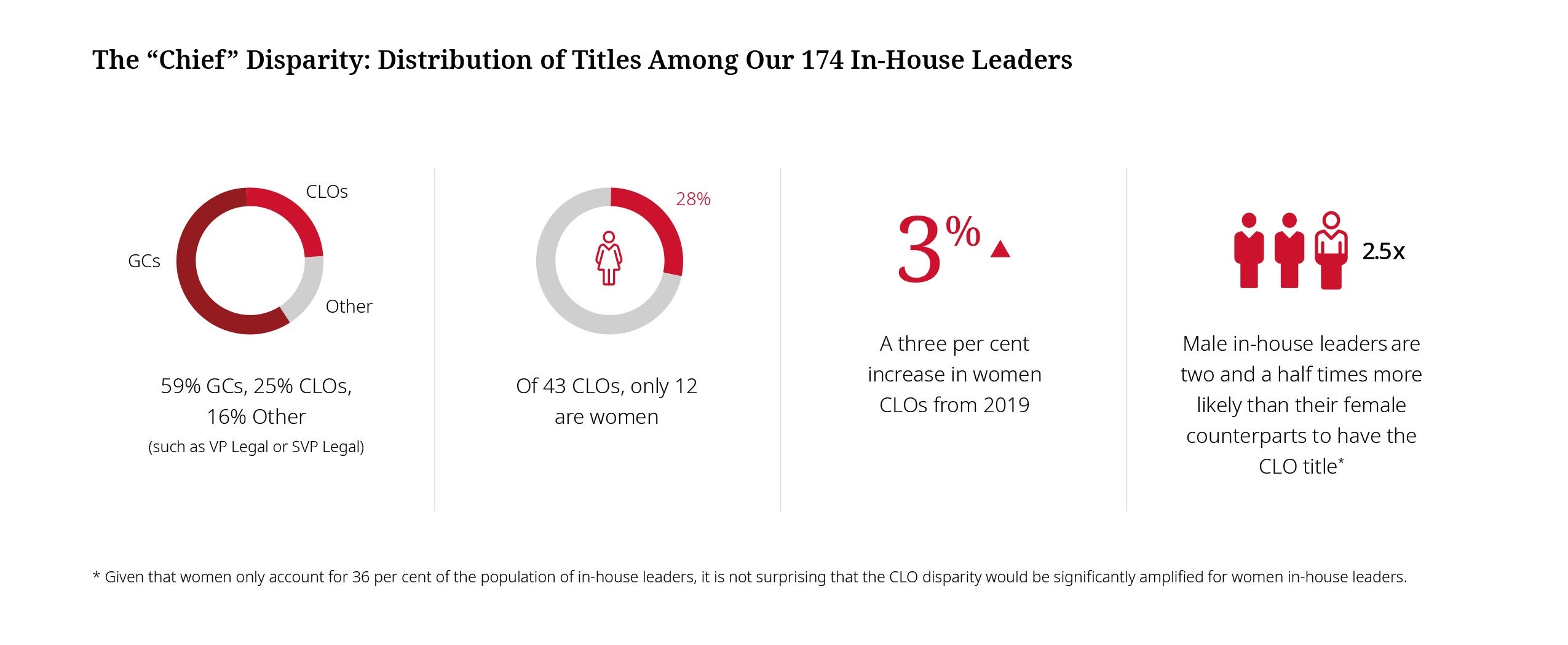 While more women GCs are serving on boards, 154 of the 198 companies in the study sample do not have a woman GC on their board, including in the hotel/leisure, health/pharma and communications services sectors. A review of the in-house GC pipeline suggests that the appointment of women to in-house leadership positions lags compared to the appointment of men in recent years. And although there are no published diversity metrics to establish a reliable baseline at this time, a preliminary review suggests that less than 20 per cent of in-house leaders come from a visible minority group.