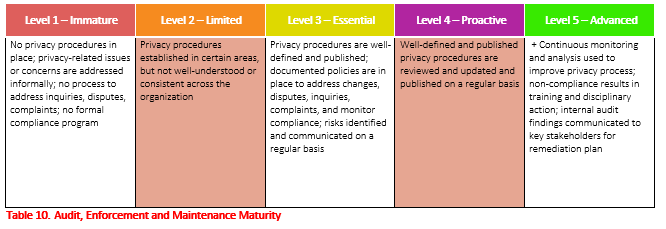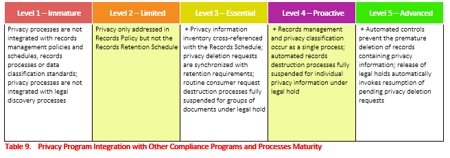 Different levels of program maturity are required for different companies. Companies vary on the number of consumers whose privacy information they hold, the quantity and breadth of this information, how widely it is shared as well as how this information is stored and managed. Savvy privacy professionals know that targeting the right level of maturity is key. Companies should consciously target a specific maturity level and build their programs to meet that level